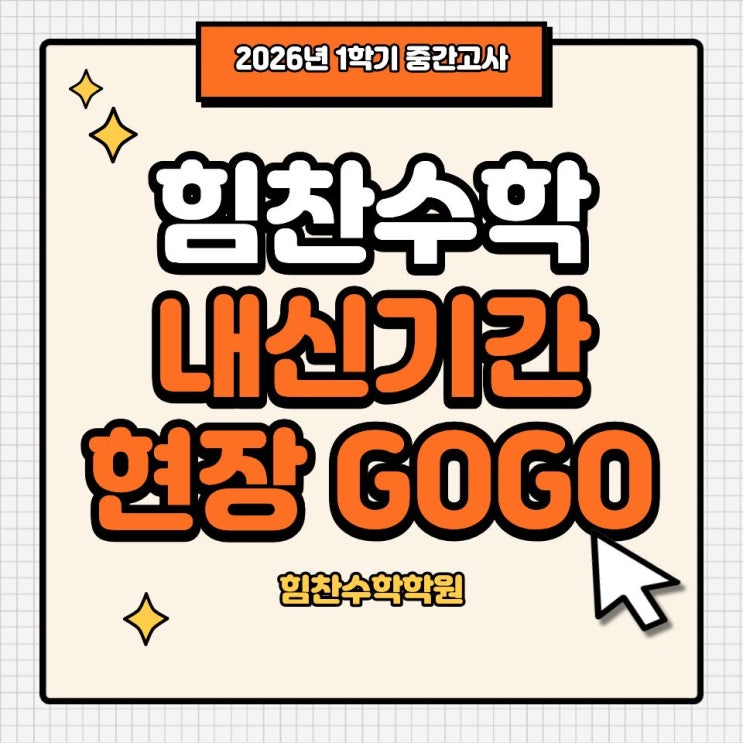 안녕하세요. 힘찬수학입니다. 오늘은 끝까지 최선을 다하고있는 우리아이들 내신기간 모습을 소개해드리고자 합니다. 그 현장 같이 가보실까요~?? GO! GO! 올해 첫 내신인만큼 힘찬선생님들도 우리아이들도 정말 최선을 다하고있답니다. 학생 한명 한명 면담과 학습관리를 통하여 개개인 마다 최대한 목표치 그 이상을 달성 할 수 있도록 노력하고 있습니다. 또한 수학공부 뿐만 아니라 타과목 공부도 하느라 바쁠 우리 힘찬아이들에게 작지만 정성담긴 선물을 나누어 주었습니다 ♥ 장난도치고 친구들과 떠들고 놀고싶을 시기지만, 수업할때만큼은 가장 진지하고 집중해주는 우리 힘찬중등아이들입니다. 우리 아이들이 선물받고 행복해하는 모습....... <img src="https://blogthumb.pstatic.net/MjAyNjA0MjNfMjg3/MDAxNzc2OTIwMjU1NjIw.H2Y7qTYBujb3OK67aoBuId4EFL0Z0T9IwSjClAZqbqwg.Wt8Kq9594FteDbhPi40hLBgvVAq8U9psRnhiNQb-am4g.JPEG/%C1%A6%B8%F1%C0%BB_%C0%D4%B7%C2%C7%D8%C1%D6%BC%BC%BF%E4._%2813%29.jpg?type=s3" />