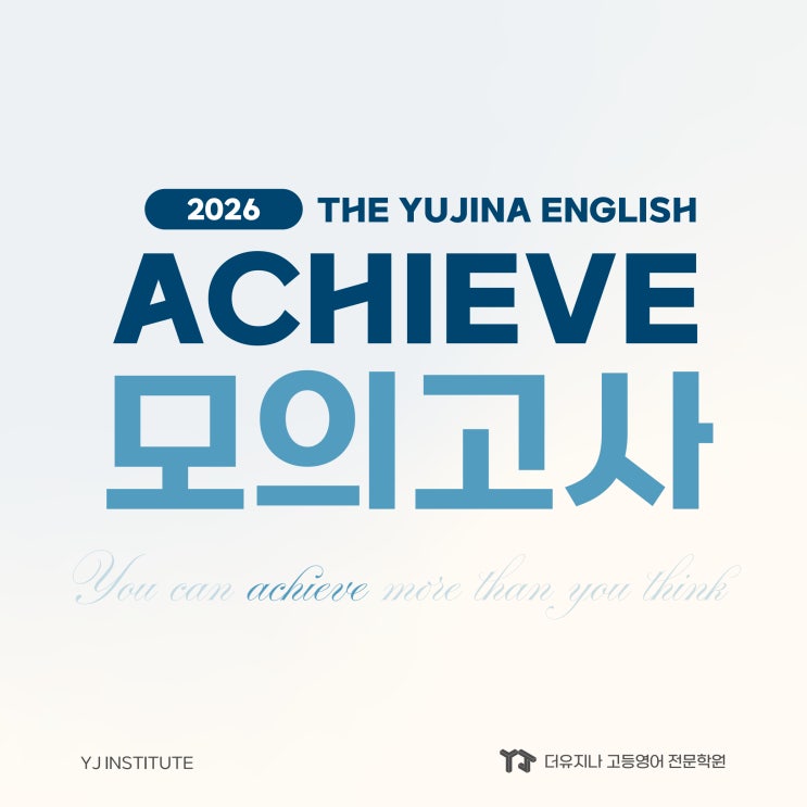 안녕하세요, 얼마 전까지만 해도 날씨가 제법 쌀쌀했는데, 어느덧 벚꽃도 지고, 여름이 오는지 기온이 많이 올라가네요. 이 시기에, 우리 더유지나 학생들은 각 학교의 중간고사를 준비하고 또 응시하느라 정신이 없는 나날을 보내고 있을 것 같습니다. 그래도 윈터스쿨부터 영어에 대한 실력을 쌓고, 또 열심히 공부하며 준비했을 것이기에, 반드시 좋은 결과가 있을 것이라 굳게 믿습니다! 중간고사가 끝나면, 이제 우리는 다시 모의고사 체제로 전환하여 학년별 맞춤으로 수능(모의고사)에 대해 대비를 해야 합니다. 이미 블로그에 여러 포스팅을 통해 말씀드렸던 것처럼, 목표하는 대학에 진학하기 위해서는 내신과 함께 수능 최저학력기준을....... <img src="https://blogthumb.pstatic.net/MjAyNjA0MTlfMTIx/MDAxNzc2NTkxOTY3MzIx.tDbS87aaMBSjbcGv-OBVJEdfsTOAVMW-Mt_vEhXa3eUg.jXhHE07h-V3sXsOb1Q5xJYm36aomQoUB5t6yivN9VOUg.JPEG/260414_%BA%ED%B7%CE%B1%D7_Achieve%B8%F0%C0%C7%B0%ED%BB%E7_Achieve_%BE%C6%C6%AE%BF%F7_%C3%D6%C1%BE_%C0%CC%BC%B1%C1%F8_2.jpg?type=s3" />