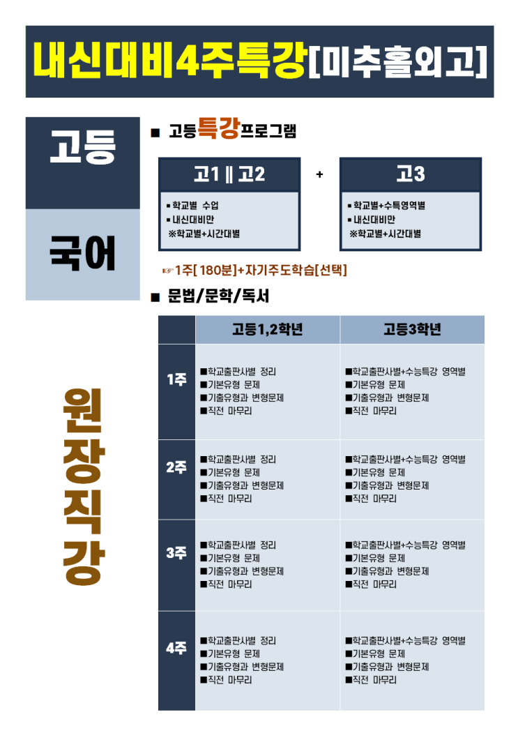 [청라 국어] 미추홀외고 중간고사 1등급 학습전략, 원장 직강 4주 특강!!