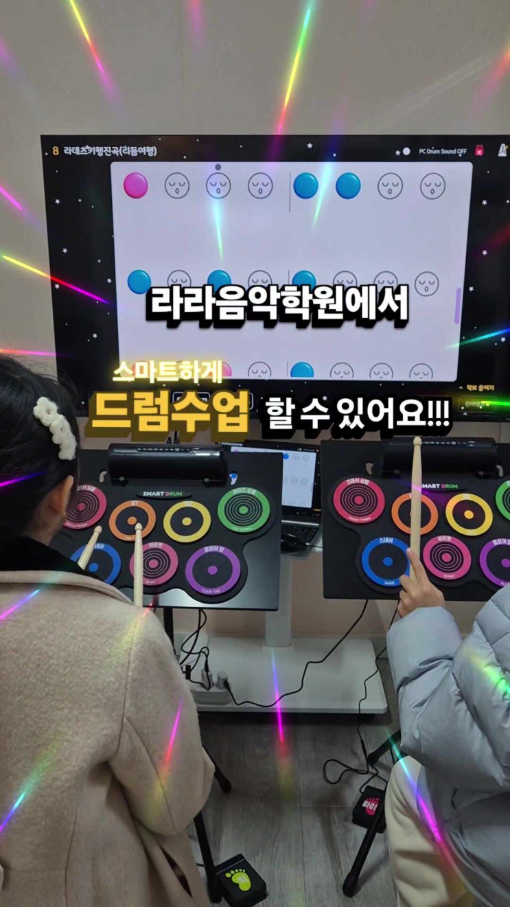 안녕하세요. 라라음악학원입니다. 저희 학원에서는 재미와 실력을 함께 키우는 드럼 클래스도 있어요! 놀듯이 리듬을 배우는 과정 속에서 자연스럽게 박자를 익히고, 완성되는 연주를 통해 아이들의 자신감도 쑥쑥 자라게 됩니다! 우리 아이들이 정말 즐거워하고, 이 시간을 기다려요. 드럼은 리듬을 가장 직관적으로 배우는 악기에요. 수업을 통해 자연스럽게 익힌 박자감과 타이밍은 피아노를 연주할 때도 큰 장점으로 이어진답니다^^ 특히 박자를 놓치기 쉬운 아이들도 드럼을 병행하면 훨씬 안정적이고 자신감 있게 피아노를 연주하는 모습을 볼 수 있습니다 악기를 배우는 시간은 단순한 취미를 넘어 아이들에게 성취감과 집중력, 그리....... <img src="https://phinf.pstatic.net/image.nmv/blog_2026_04_14_2610/e042T9kf6x_03.jpg?type=f480x480" />