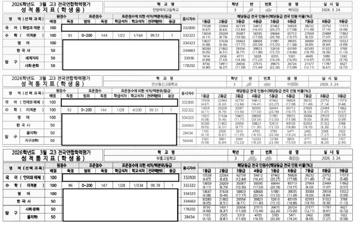 26년 3월 전국연합학력평가 고3 성적우수자성적우수자