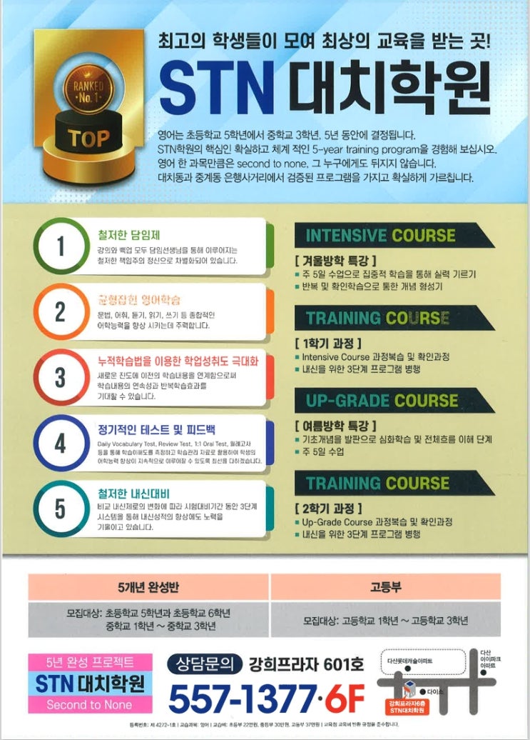 다산지앤비(GnB) 영어학원은 학원장이 직접 초등부터 중고등 내신까지 책임집니다!