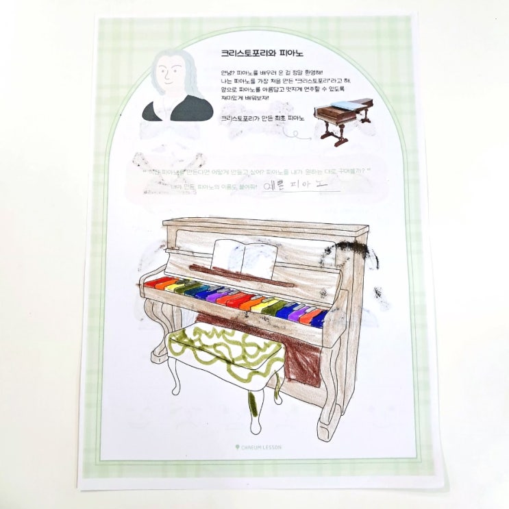 처음 만난 피아노 첫 시간은 피아노가 어떤 악기인지 탐색해보는 것이 중요하지요! 아이들의 상상 속 피아노의 모습은 알록달록 무지개 건반이 되기도 하고 검은 건반과 흰 건반의 위치가 바뀌기도 한다. 이름도 특별하다 예쁜 피아노, 노아피, 공룡 피아노, 무지개 등 이름 하나에도 자신의 생각이 가득 담겨있다. 그리고 이어지는 시간은 감정 표현 수업! 훗날 감정이 연주에 이어질 수 있도록, 긍정적 감정과 부정적 감정 모두 수용하며 섬세하게 느낄 수 있도록 도와준다. 처음 만나게 된 피아노가 최고의 친구가 될 수 있기를 바라요❤️ #중화초피아노 #예술공간피아노 #피아노첫수업 #예술융합교육 #채움레슨 <img src="https://blogthumb.pstatic.net/MjAyNjA0MTZfODMg/MDAxNzc2MzA5MjAxODM0.j5gWUcTrm_THItw_CYBgCcmGNGOEl3EqpJfSbkdU0QQg.IpcXgwKBF-TNF2O55bJtUoAUh80DxZvIitmB4QXY55Ug.JPEG/900_20260227_190913.jpg?type=s3" />