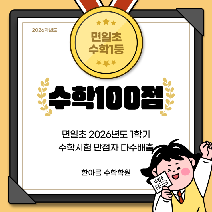 [경축] 면일초 수학 성적 압권! 100점 대거 배출 및 전원 최상위권 달성!