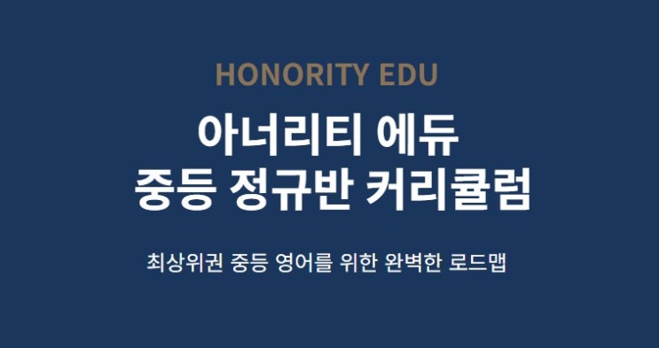 아너리티 중등 정규반의 탄탄한 커리큘럼을 소개합니다. 아너리티는 중등 내신을 넘어 고등 입시, 그 이상의 실력을 목표로 합니다. 우리 아이에게 딱 맞는 로드맵을 확인해 보세요. 중등 영어, '열심히' 하는데 성적이 제자리라면? 방향을 바꿔야 결과가 바뀝니다! 초등학교 때까지는 영어를 곧잘 하던 아이들이 중학교에 올라가면 많은 학부모님들이 이렇게 말씀하십니다. “단어는 외우는데 성적이 안 나와요.” "문법 개념은 다 배웠다는데, 서술형 평가만 나오면 쩔쩔매요." “독해 속도가 너무 느리고 오답도 많아요.” 이 문제의 공통점은 단 하나입니다. ☞ ‘부분 학습’만 되어 있기 때문입니다. 아너리티는 다릅....... <img src="https://blogthumb.pstatic.net/MjAyNjA0MTRfMTI1/MDAxNzc2MTU2NjQ5NzM0.SOK9IeWXLkc9S_jPXLWHYeVTLv5W3ZJQ60ckmGiQ43Mg.MkOzDZhzj_DN7QV5aQP20ZoxkX2PjpuW4p8t67NkdvEg.JPEG/%C8%AD%B8%E9_%C4%B8%C3%B3_2026-04-14_174930.jpg?type=s3" />
