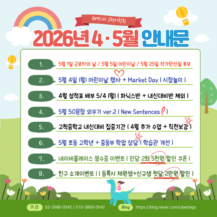 ★ 유베스타 고척어학원 2026년 4*5월 안내문 ★