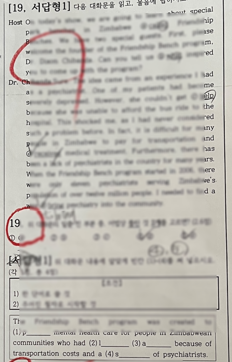 안녕하세요:) 건대부고 영어학원, 압구정 파인로드영어입니다. 건대부고 1학년 1학기 영어내신 중간고사 간단 리뷰를 진행합니다! 선택형 34문항 (80점) 서답형 6문항 (20점) 시험은 위와 같이 구성되었고, 전반적인 난이도는 평이했습니다. 전체적으로 내용일치/ 빈칸 /요지/ 제목 / 어휘 / 어법 이 고르게 출제되었는데요. 원문 변형이 거의 없고 있더라도 단순하고 지엽적인 수준으로 이루어져, 기본에 충실했다면, 좋은 점수를 받을 수 있었을 것으로 보입니다. 중요한 포인트는 지문을 표면적으로 읽는 것이 아니라, 의미를 제대로 파악하고 소화하는 것이 핵심이었다는 점입니다! 주제 요지 파악 능력이 중요! 예를 들어, 서답형 1번 문제....... <img src="https://blogthumb.pstatic.net/MjAyNjA0MjZfMjQ3/MDAxNzc3MTk4NTMzMTc0.wFXNbOAfw_qFoxvTQb5QP5uxAsX_e8iN8Dl2KNfcC4Yg.0Ip02kVNu1fNkSjCyT-IBxmggPrKJMfIp57coQN0ll4g.PNG/image.png?type=s3" />