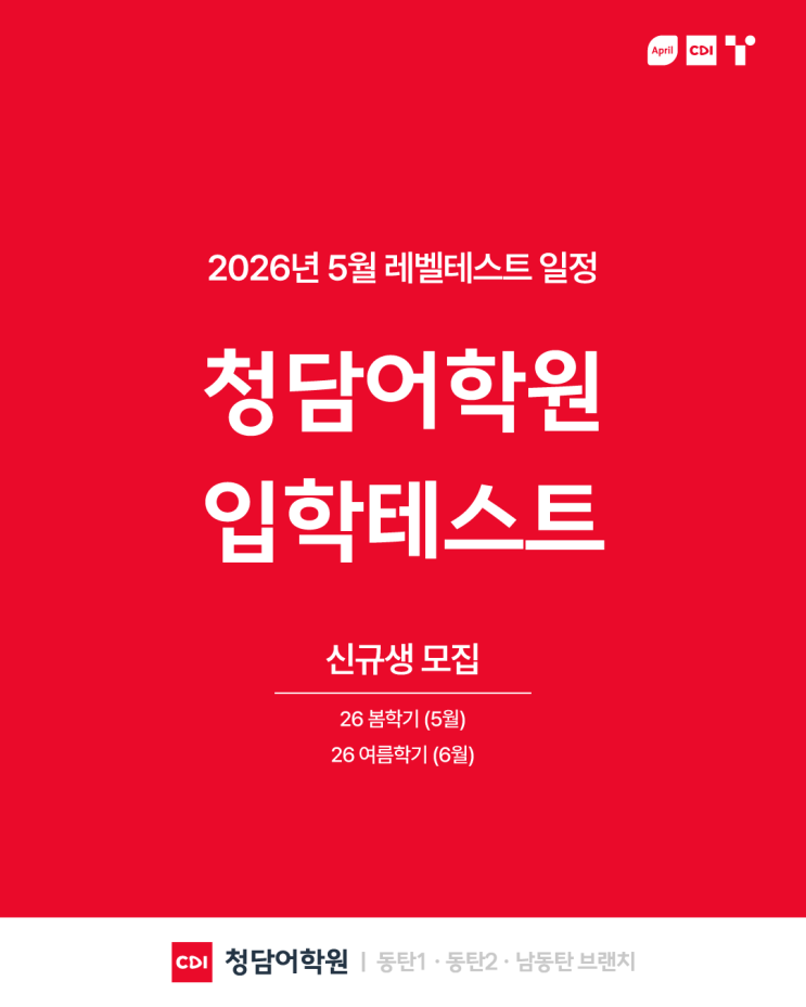 [남동탄청담어학원] 26 봄학기 5월 입학테스트 일정 안내
