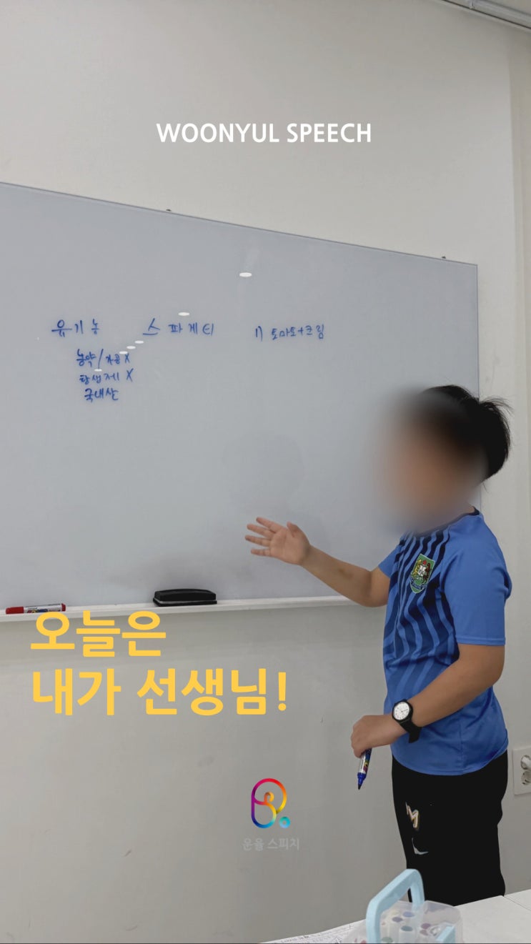 안녕하세요. 운율 스피치입니다. 오늘은 운율 스피치만의 특별한 수업을 소개하려고 합니다. 어디서도 볼 수 없던, 운율 스피치의 즐거운 키즈 스피치 현장! 오늘은 내가 선생님이 되는날! 아이들이 직접 앞에 서서 ‘선생님’이 되어보는 시간! 부스터 데이 수업을 진행했습니다. 처음에는 조금 쑥스럽고 긴장된 표정이었는데요. 자신이 좋아하는 이야기를 꺼내기 시작하면서 아이들의 눈빛이 달라지기 시작합니다. 아이들은 각자 자신 있는 주제를 스스로 선택합니다. 보드게임 잘 하는 방법 내가 키우는 도마뱀을 잘 키우는 방법 유기농 음식에 대한 설명 나의 경험을 이야기하며 추천하고싶은 여행지까지! 아이들만의 색깔이 담긴 다양한 주....... <img src="https://blogthumb.pstatic.net/MjAyNjA0MjJfMjA1/MDAxNzc2ODI0NjIzMzQ1.DKy9Pb7xIoHwuWCf8AqeXkZTm4X-vKowR99P-cPUViUg.qsJI3wWFA9y6ogicSQ2e6AG3M4zNNcLhghvGfrKsfskg.JPEG/%B8%B1%BD%BA%BF%EB-%C7%A5%C1%F6-001.jpg?type=s3" />