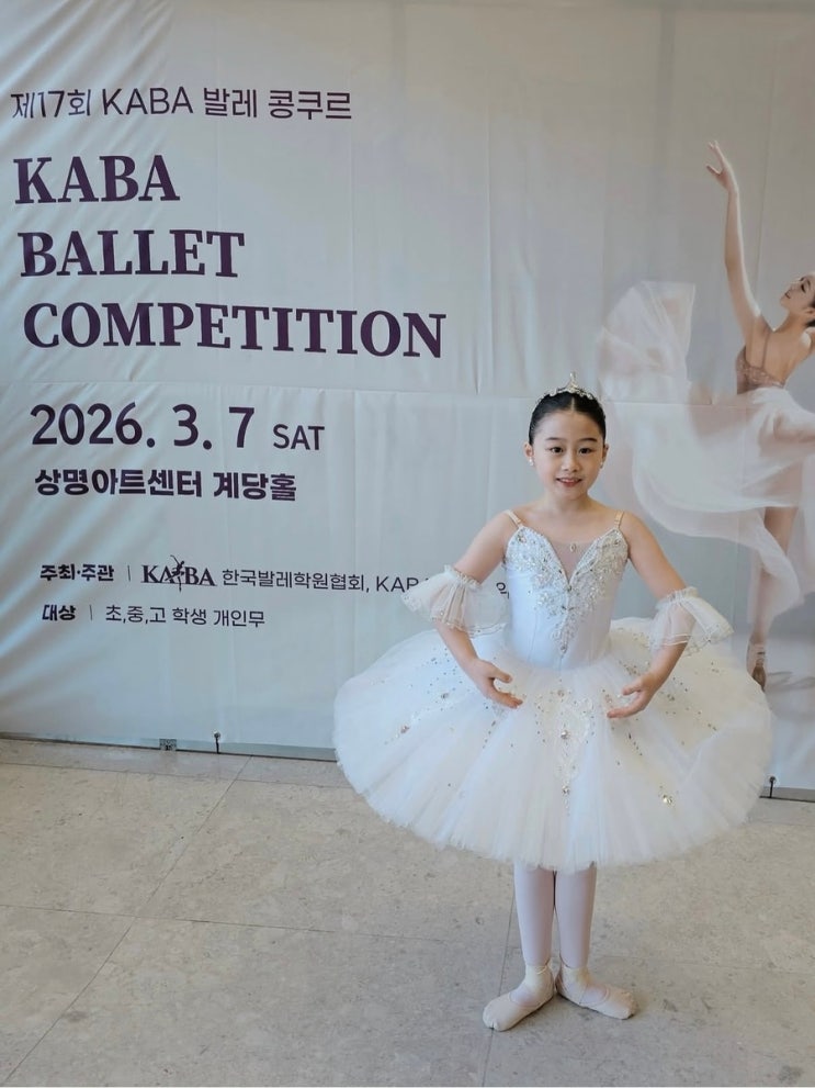 2026년 콩쿠르 시즌이 돌아왔습니다 올해도 어김없이 우리 루미엘리나 친구들이 겨울 동안 구슬땀 흘리며 함께 연습해왔어요. 3월 KABA 발레 콩쿠르를 시작으로 2026년 콩쿠르 일정이 시작되었습니다. KABA 발레 콩쿠르 & 코리아유스 발레 그랑프리 수상 결과를 전해드립니다. KABA 발레 콩쿠르 수상 결과 초등학교 3학년 옥나엘 (은의 요정) – 은상 초등부 4학년 이수빈 (탈리스만) - 동상 초등학교 5학년 장서인 (레이몬다 생일) - 은상 코리아유스 발레 그랑프리 수상결과 초등학교 3학년 옥나엘 (은의 요정) – 은상 초등부 4학년 이수빈 (탈리스만) - 동상 수상을 축하합니다! #루미엘세종발레 #의정부발....... <img src="https://blogthumb.pstatic.net/MjAyNjA0MTdfMTAx/MDAxNzc2NDM2Mjk4OTAw.ZJNaaWOdMQhPZcyH1U8R8w0b4FeN6GKL7EW-H4M2oKIg.Re_SsXBg8HeKrFTuceUJcM-679QDR7AXwBz4vjJ1Bxkg.JPEG/IMG%A3%DF4348.jpg?type=s3" />
