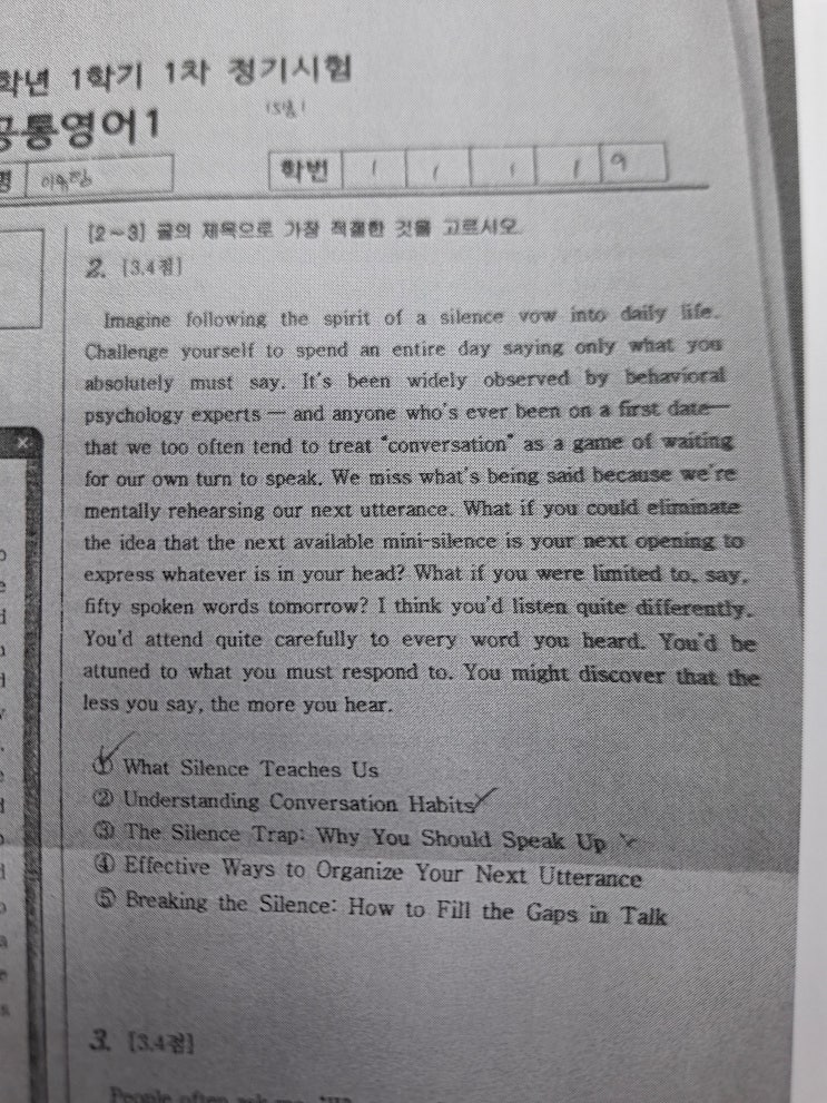 권민수영어 2026 1학기 광동고1 중간고사 어려웠지만 해냈습니다.