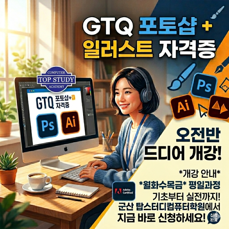 [군산] GTQ 포토샵 + 일러스트 자격증, 오전반 개강 안내!