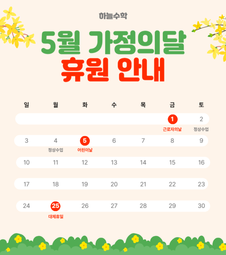 [하늘수학] 5월 휴원 일정 안내