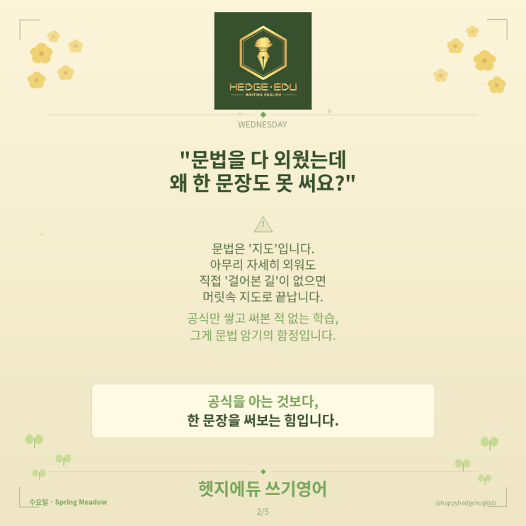 [윤이연 교육 칼럼] 문법 공식보다 먼저, 문장을 먼저 써보세요 — 초등 문법은 공식이 아니라 '습관'입니다(ft.헷지에듀 쓰기영어)