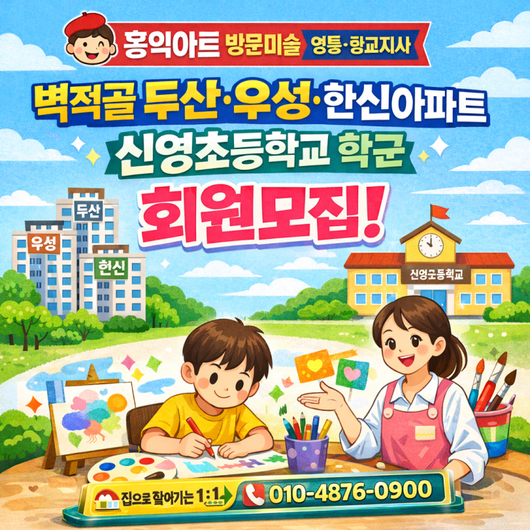 수원 영통 벽적골 두산·우성·한신아파트 방문미술 신영초등학교 학군 홍익아트 방문미술 회원모집