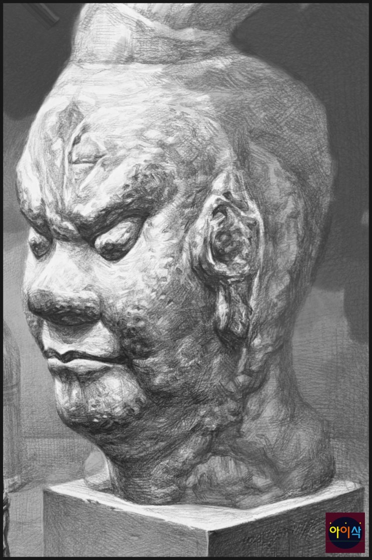 안녕하세요. 목동 아이삭 미술학원입니다. 오늘은 동국대 불교미술과에 대해서 알아보겠습니다. 위에 그림은 동국대 불교미술과 준비생 그림을 포스팅한 것입니다. 오늘 그림의 핵심은 재질이 완전히 다른 소재들을 한 화면에서 “같은 빛”으로 묶어냈다는 점입니다. 석고 금강역사, 돌로 조각된 외국 불상 조각판, 그리고 유리 소주병과 귤이 한 장면에 같이 놓이면 자칫 화면이 산만해지기 쉬운데, 이 그림은 광원과 명암 흐름을 먼저 크게 정리해 놓고 그 위에 디테일을 쌓아서 전체가 안정적으로 보입니다. 먼저 금강역사 석고부터 보겠습니다. 이 학생은 석고를 “하얀 물체”로 그리지 않고, 면이 꺾이는 방향을 따라 명암 단계를 분명히....... <img src="https://blogthumb.pstatic.net/MjAyNjA0MjhfMTE3/MDAxNzc3MzQyNjMyNjg0.i5aTvGtBFL87rddKa9bPWNeV1wHploHuLLTlT1E19LQg.RZLQ1sXhAdszBtF6-z8Cj49SYFX_GCX4dd81_DfABvYg.JPEG/IMG_5992.jpeg?type=s3" />