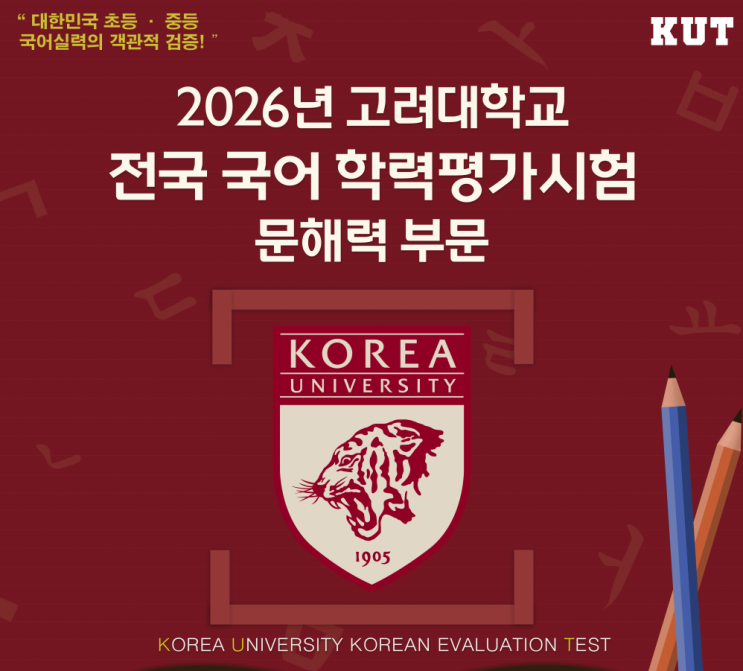 응시를 원하시는 학부모님께서는 원장선생님께 문자로 신청해주시기 바랍니다. 재원생만 응시가 가능합니다. 평가일시 : 6월 20일 토요일 11시30분-12시 30분 평가장소 : 하늘고래 일대 1. 왜 지금 '국어(문해력)'인가? 최근 아이들이 교과서의 단어 뜻을 몰라 수학 문제를 못 풀거나 사회/과학 개념을 이해하지 못하는 경우가 많습니다. 국어 능력은 단순히 국어 한 과목에 그치지 않고 전 과목의 성취도를 결정짓는 '기초 체력'입니다. 학습의 도구: 문해력이 높아야 정보 습득 속도가 빨라집니다. 사고의 확장: 글을 읽고 맥락을 짚는 능력은 비판적 사고의 핵심입니다. 교과 연계: KUT 국어 평가는 국어뿐 아니라 사회, ....... <img src="https://blogthumb.pstatic.net/MjAyNjA0MTNfMjUw/MDAxNzc2MDgyOTk4MzEy.EyOK9Rbjvm67LryNsc1coxXROK_cHhLipooNelrzrzUg.UoHkDtTml0TdB2pZiir73Ri0BdP6H28Pba4wylZR7wwg.PNG/image.png?type=s3" />