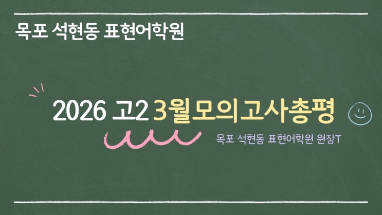 안녕하세요, 석현동 표현어학원입니다. 2026년 첫 고2 전국연합 학력평가 영어 영역이 끝났습니다. 이번 시험은 고2 시험이라고 보기에는 난이도가 상당히 높았던 시험이었습니다. 시험을 보고 예상보다 점수가 낮게 나온 학생들도 많았을 것으로 보입니다. 오늘은 이번 시험의 출제 경향과 고난도 문항, 그리고 앞으로의 공부 방향에 대해 이야기해 보겠습니다. 1. 총평 이번 시험은 어휘 난이도가 눈에 띄게 높아졌고, 지문도 전체 흐름을 정확히 이해하지 못하면 답을 고르기 어려운 문제들이 많았습니다. 단순 해석만으로는 풀 수 없고, 지문 전체의 논리와 흐름을 이해해야 풀 수 있는 문제들이 많았습니다. 이로 인해 시간 분배에 실패하여....... <img src="https://blogthumb.pstatic.net/MjAyNjA0MDdfODQg/MDAxNzc1NTI1MTY2NTYw.tRtXeTjDXjFWb6cXn5JtmmS-Wk2nUnV9aUlE2B-AC-Eg.bbE67SRmaLnrziIh1XanHEEbNtbCELygcJDaHFaJ58Ag.JPEG/2.jpg?type=s3" />