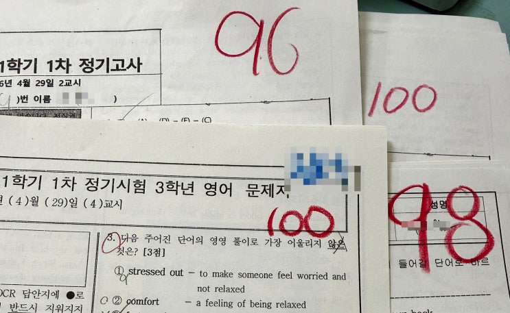 1. 시험 직전 보강, 이렇게 진행했습니다 ✔ 최종 점검 문제풀이 ✔ 단원별 핵심 개념 다시 정리 ✔ 서술형 대비 집중 훈련 ✔ 학교별 프린트 정리 학교시험대비를 하는데, 학교프린트를 중요하게 봐야하는건 당연하겠죠? + 객관식은 맞는데 서술형에서 틀리는 문제 유형을 집중적으로!! 단순히 답 맞추는 수업이 아니라 “왜 틀리는지”까지 정답의 근거를 찾는 방법을 유지하며 개별 피드백과 함께 진행했습니다. 2. 시험 대비, 자체 제작 교재로 준비했습니다 이번 중간고사 대비에서는 학생별 성적을 정확하게 끌어올리기 위해 자체 제작 교재 중심으로 보강을 진행했습니다. 단순 문제집 풀이가 아니라, 학교 시험에 맞춘 맞춤형 자료....... <img src="https://blogthumb.pstatic.net/MjAyNjA0MzBfMTEx/MDAxNzc3NTMwNDg4Mjkw.TNpQQlXYczPlnJjV1qLe-lDZsNHhmVzR_HH9KLruizYg.B6QNVh2_dioM2JaVQF6iwJn6nVSt5stqcoCTljecU5kg.JPEG/KakaoTalk_20260430_152628032.jpg?type=s3" />