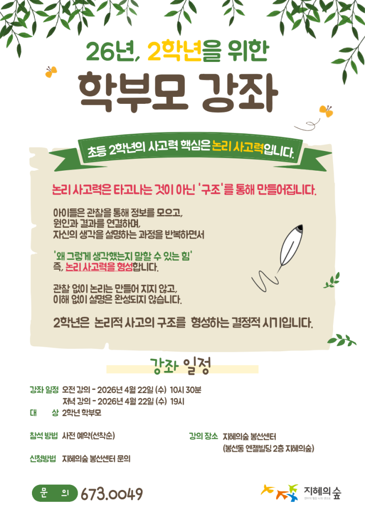 2026년 지혜의 숲 봉선센터 2학년 학부모 강좌