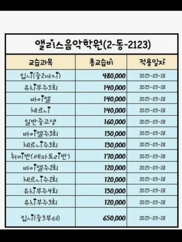 2026년도 나래음악학원 피아노교육비 안내문. ✨️.나래피아노