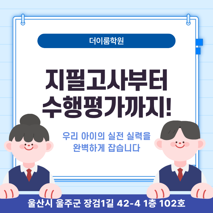 울산 무거동 장검중 지필고사부터 수행평가까지! 우리 아이의 실전 실력을 완벽하게 잡습니다