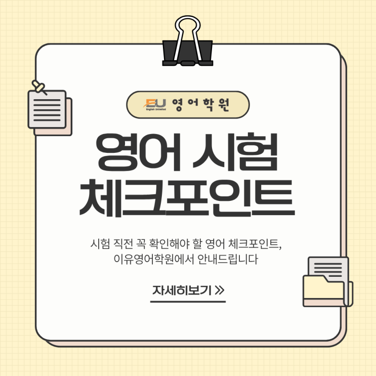 시험 직전 꼭 확인해야 할 영어 체크포인트, 이유영어학원에서 안내드립니다