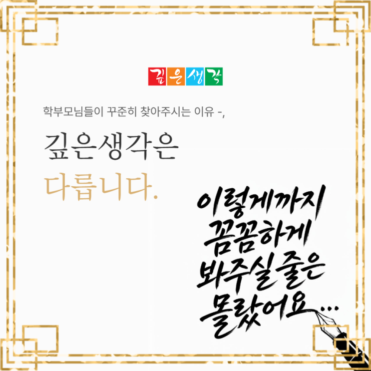 안녕하세요, 깊은생각 평촌 초,중등부입니다. 깊은생각 테스트 및 상담 관련 안내드립니다. ★대면상담 시 중등부 원장님과 1:1 학습 상담 진행★ ★테스트 및 상담비용 무료★ 깊은생각 평촌 진단 평가 깊은생각은 1997년 대치동에서 시작하여 현재까지 명실상부한 대치동 최고의 수학학원이 되었습니다. 깊은생각 대치를 먼저 접하시고, 평촌도 대치와 동일한 학원인지 궁금해 전화주시는 분들이 많습니다. 깊은생각 평촌 본원도 대치, 서초, 송파 등 각지에 위치한 깊은생각과 동일한 학원이며, 학원에서 사용하는 깊은생각 자체교재 또한 동일한 라인의 교재를 사용하고 있습니다. 학원에 처음 문의주시면, 간단한 입학 상담 후 현재 학생의....... <img src="https://blogthumb.pstatic.net/MjAyNjA0MjFfMTE4/MDAxNzc2NzYxNzgzMjcw._LGWjuyliGMtqrYoNlBttu16BXiINyIbCb4iCs9l0uAg.yECOMdrrNZkiZphPVddufzHUuld3vnj9r5CwBK2D3b4g.PNG/%BA%D0%B4%E7_%C8%AB%BA%B8%C0%CC%B9%CC%C1%F6.png?type=s3" />