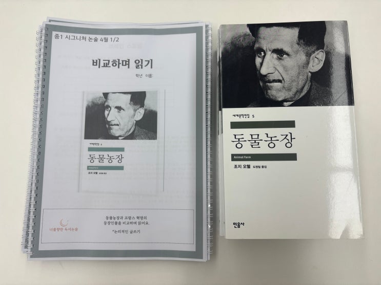 지난주에는 조지 오웰의 대표 작품 <동물농장>을 읽고 주제 글쓰기를 진행했습니다. 중등 시기부터는 책의 난이도가 단순한 분량이 아니라 배경지식과 구조의 복잡성에서 크게 달라집니다. <동물농장> 역시 길이는 짧은 편이지만, 번역서이면서 다양한 인물과 사건이 유기적으로 연결되어 있어 처음 접하는 학생들에게는 다소 어렵게 느껴질 수 있는 작품입니다. 이번 수업에서 인상적이었던 점은 아이들이 각자의 방식으로 책을 받아들이고 끝까지 읽어내려는 태도였습니다. 처음에는 내용이 낯설고 어렵게 느껴지지만, 수업을 통해 하나씩 풀어가며 조금씩 이해의 폭을 넓혀가는 과정이 자연스럽게 이어집니다. ✍️ 글쓰기에서 드....... <img src="https://blogthumb.pstatic.net/MjAyNjA0MTRfMTA2/MDAxNzc2MTQ1MDQwMjU5.vzr9R39xR0p3XRgyNgBbTcygzHMK_4C9fttO4buiimYg.uH8WOaH1QX_17nGZl_SlSPcJEqnNMj9KZ6NSpvtuyhMg.JPEG/KakaoTalk_20260414_143514179.jpg?type=s3" />