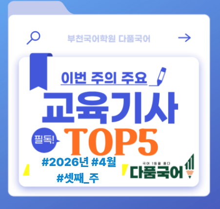 [부천 국어학원 다품국어] 26년 4월 셋째주 주요 교육입시기사 TOP5 스크랩
