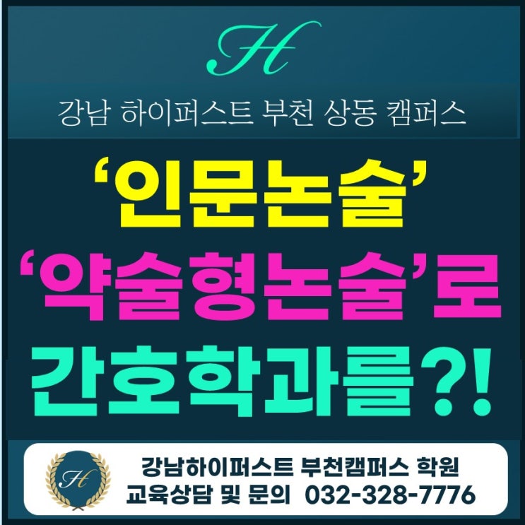 안녕하세요~~ 강남하이퍼스트 부천캠퍼스 원장 이정아입니다. 오랜동안 학생들을 지도하며 가장 안타까운 순간은, 간호학과라는 확고한 꿈이 있음에도 불구하고 '문과라서', 혹은 '내신 성적이 부족해서' 포기하려는 제자들을 볼 때입니다. 하지만 결론부터 말씀드리면, 길은 반드시 있습니다. 수능 최저학력기준과 논술이라는 도구를 잘 활용한다면, 지금의 성적으로는 상상하지 못했던 대학의 간호학과 과잠을 입을 수 있습니다. 오늘 그 구체적인 전략을 가감 없이 공유합니다. 1. 문과생도 가능하다! 인문논술로 가는 간호학과 많은 학부모님과 학생들이 간호학과는 이과만의 전형이라고 생각하시지만, 주요 상위권 대학....... <img src="https://blogthumb.pstatic.net/MjAyNjA0MjBfMjM0/MDAxNzc2NjgxMDQ4Mjg1.Lfd9xeYzAG8oWBcWKY5kebLkZDdh77k-9vigc4LKoc4g.CbpCwVp2KrxVecvtANb92Bs4AwtdjJ85K_yObTvFdnMg.JPEG/%C0%CE%B3%ED%BE%E0%B3%ED%B0%A3%C8%A3%C7%D0%B0%FA.jpg?type=s3" />