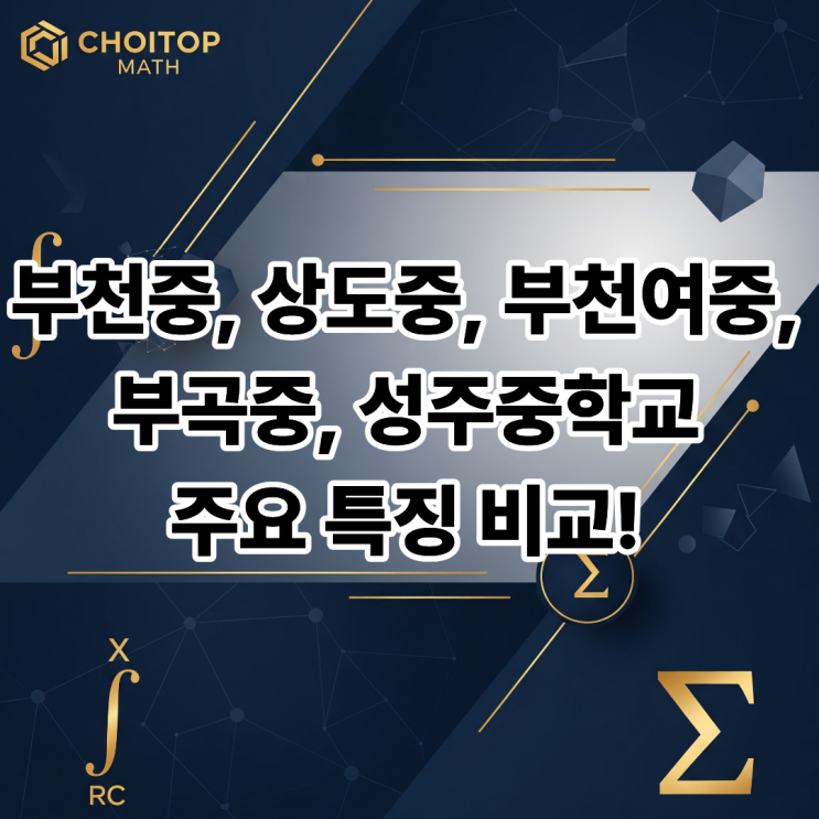 안녕하세요 최탑수학 입시학원입니다. 오늘은 행정구역상 상동(중동역 북부)과 송내동(중동역 남부)으로 나누어진 중동역 인근 5개 중학교 부천중학교, 상도중학교, 부천여중학교, 부곡중학교에 특징에 대해 학교 알림이 자료를 토대로 비교 정리해 보겠습니다. 중동역 부근 중학교 학군 전략 비교 학교별 상세 특징 1. 상도중학교 학군 핵심: 중동역 북부 상동 지역에서 학부모 선호도가 가장 높은 학교 중 하나로 인근 아파트 단지(푸르지오 등) 거주 학생들이 주로 배정됩니다. 분위기: 전통적으로 학업에 관심이 있는 학생들이 모이는 편이라 면학 분위기가 잘 잡혀 있다는 평가를 받습니다. 2. 부천여자중학교 특화 교육: '탄소중립 중....... <img src="https://blogthumb.pstatic.net/MjAyNjA0MjRfMjA1/MDAxNzc3MDI2NTgyMDQy.xwhYY-gKyiNoJRUDwsROkidXrGJOfd-pfx44aPaUGmog.8oacyZ3iBmgfjrVXEBwDb2j6v5TmWCtvW4v3-slDayUg.PNG/%C1%A6%B8%F1%C0%BB_%C0%D4%B7%C2%C7%D8%C1%D6%BC%BC%BF%E4..png?type=s3" />