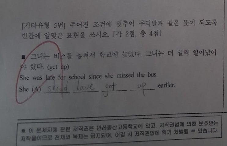 동산고는 자사고인 만큼 일반고에 비해 지문의 난이도가 높고, 단순 암기보다는 논리적 사고와 정확한 영작 능력을 요구하는 것이 특징입니다 2025년 안산동산고 1학년 영어 지필평가 경향 및 고득점 전략 안녕하세요! 오늘은 안산동산고 1학년 영어 중간고사 시험지를 분석해 보려고 합니다. 이번 시험을 치른 학생들에게는 복습의 기회를, 다음 시험을 준비하는 학생들에게는 완벽한 가이드라인이 되길 바랍니다. 1. 전체적인 출제 경향: "논리력과 영작이 승부처" 이번 시험은 단순한 본문 암기만으로는 절대 고득점을 받을 수 없는 구조였습니다. 전체적인 특징을 세 가지로 요약할 수 있습니다. 수능형 변형 문제의 높은 비....... <img src="https://blogthumb.pstatic.net/MjAyNjA0MjFfMTU0/MDAxNzc2NzY2NjcwNTM2.Xjh4vm2z_dPa5vIsiSlH0kp7-OXA1ZoeniCL38koUfkg.lxW2a5i4aZ9IeOqNdlWoLZsidHfvzHj2H7HMBri8MQEg.JPEG/3488.jpg?type=s3" />