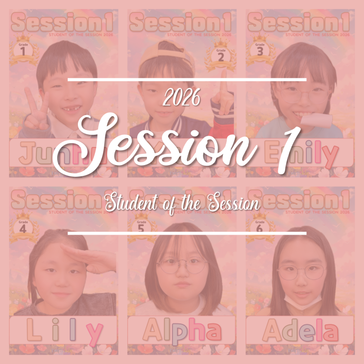 안녕하세요, 트윈클어학원 입니다! 트윈클일산에서는 매 세션이 마무리될 때마다, 한 Session 동안의 성장을 돌아보는 의미 있는 시간을 갖고 있습니다! 특히 각 학년별로 학습 태도와 성취도를 종합하여 가장 우수한 학생을 선정하는 “Student of the Session” 수상 제도는 아이들의 노력과 성장을 함께 축하하는 따뜻한 순간이랍니다. 2026년 Session 1에서도 성실함과 꾸준함으로 빛난 학생들이 선정되어 기쁜 마음으로 소개드립니다. Grade 1 Junhu (1E Golden Scouts T/Th) Grade 2 Yun (2E Magical Wizards T/TH) Grade 3 Emily (3T Colossal Cobras W/F) Grade 4 Lily (4E Royal Stars W/F) Grade 5 Alpha (5E Tea Time Dragons W/F) Gr....... <img src="https://blogthumb.pstatic.net/MjAyNjA0MDdfMTYg/MDAxNzc1NTM3MTA5OTky.z6Mwv1ECz2Wh4bmvIo7RMwlQOB9_ONGwPlXv73EJIgkg.QvXjyjP_StKfPjkV_njDarCDhpRFfTGURTuKbTSu1Q4g.PNG/Student_of_the_session1_main.png?type=s3" />