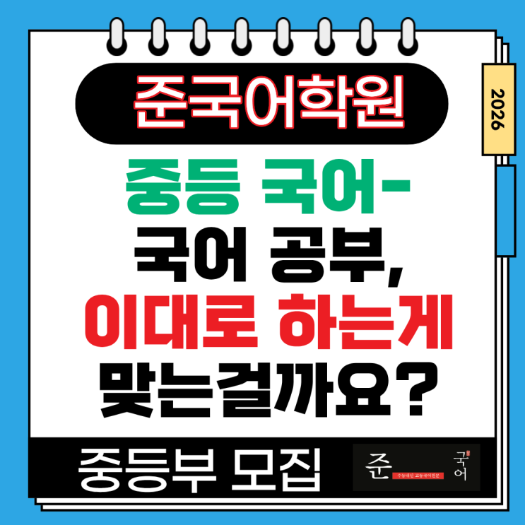 준국어 학원에서 중등부 학생을 모집합니다. <img src="https://blogthumb.pstatic.net/MjAyNjA0MTlfMTY1/MDAxNzc2NTY1NjgxODcz.gCGrpuPVBoEFQxejV4Rt-sSGH1UPghXpmI8BSord4NYg.k0TaLBKn1E0TZECI4Hc4PAFLwBkNnnsBmF_EBErs1Usg.PNG/%C1%DF%B5%EE%BA%CE1.png?type=s3" />