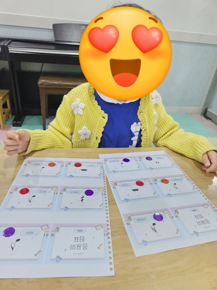 그동안 배운 음표 ㆍ쉼표 복습 겸 테스트 수업진행중이에요 기초 친구들도 기존 형님 ㆍ언니들도 모두 잊어버리지 않도록 주기적으로 반복 학습이 꼭 필요하죠~ 반복학습 지겹지않도록 아주 조금 방법을 다르게 시도하여 접근해봅니다 피아노 연주에 꼭 필요한 음표ㆍ쉼표 그동안 배유고 연주한 곡들에서 나온 것들 잘 기억하며 칩을 어디에 놓아야 하는지 천천히 열심히 고민하며 go~ 원숭이도 나무에서 떨어질수 있으니 천천히 잘보며 도전 ~ 난 무슨색 칩으로 할까? 칩 말고 음표ㆍ쉼표에 집중하기 나두 잘 할수있어요 아직 쉼표를 다 배우지 않았지만 배운건 안 잊어버릴거에요~ ^^ 좋아 좋아 앞으로도 쭉 그열정으로 부탁해 피아노 연주에 꼭....... <img src="https://blogthumb.pstatic.net/MjAyNjA0MjFfMTA4/MDAxNzc2NzgwMTU1NDM0.1HFz8_tUwansm-WatYAQzUzc8x0aYUPdCEMOXrXgjJsg.ahJ_QBhsfBEdwGn41o6b_7SoZ7YTkoDXGq9s7kEqsTsg.JPEG/900_1776780154774.jpg?type=s3" />