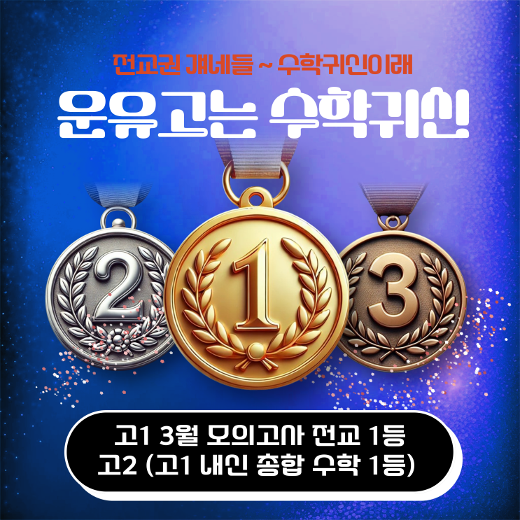 지난 3월 모의고사 운유고 전교 1등도 역시 수학귀신학원에서 나왔다는거~~ ^^ 자랑하려구요. 작년(현 고2) 고1 수학 전교1등 (1년 총합) 학생도 수학귀신학원에서 나왔거든요^^ 올해도 힘차게 출발합니다. 전교 10등권 안에 더 많은 학생들이 있지만... 아쉽게도 1등급이 아니어서.. 이름을 올리지는 못했습니다. 얘들아~!! 학교 1등급을 넘어선 모의고사 1등급을 함께 유지해야 하는거.. 알지??? 분발합씨다~~!!!! <img src="https://blogthumb.pstatic.net/MjAyNjA0MTlfMTQy/MDAxNzc2NTk5NzgzMzY5.GwCVlwh23EFb8b5_dHgXXiCWCSkdhCFfT2ywp52KuqYg.WjdC7izf0_daEgS3eE3fRVe0kZUOdH9w1SbFl7jH1qgg.PNG/%BC%BA%C0%FB%BE%E7%BD%C4-010.png?type=s3" />