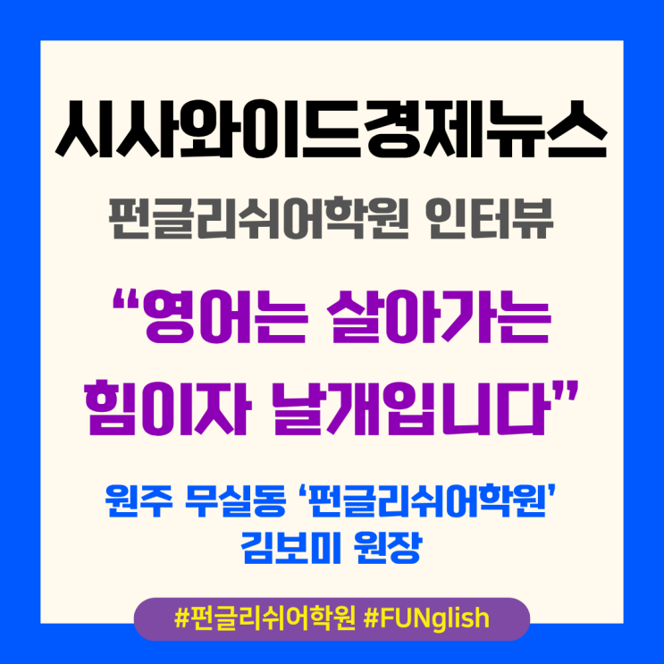 시사와이드경제뉴스 인터뷰"영어는 살아가는 힘이자 날개입니다"| 원주 무실동 영어학원 펀글리쉬어학원