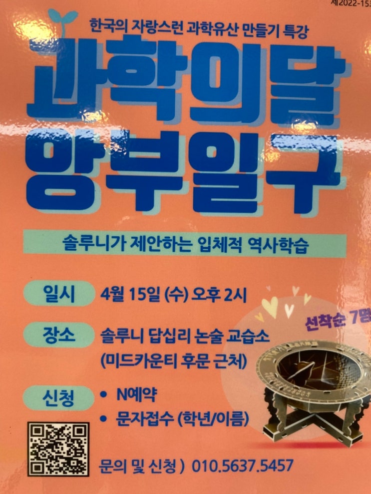 앙부일구 앙부일구 만들기 세종대왕은 조선의 문화와 과학을 발전시킨 위대한 왕이죠. 특히 장영실은 세종의 명에 따라 여러 가지 과학 기구를 만들었어요. 간의, 앙부일구, 자격루 등이죠. 그중 앙부일구는 해시계로 시각 뿐만 아니라 계절도 알 수 있는 과학 기구예요. 그림에서 보는 것처럼 가로선은 계절을 알 수 있는 절기선이고 세로선은 시각을 알 수 있는 시각선이에요. 앙부일구를 해가 잘 비치는 곳에 두고 방향을 맞추어서 바늘의 그림자가 가리키는 눈금을 보고 시각과 절기를 알 수 있다는 것이죠. 24절기중 양력으로 4월 5일 청명이 지났고 15일 후 4월 20일 곡우이니 오늘 4월 16일은 그 사이에 그림자가 위치해 있겠죠. 앙부일구....... <img src="https://blogthumb.pstatic.net/MjAyNjA0MTZfMTY1/MDAxNzc2MzE1ODU5NTM1.ReDhFC6MjDTtiSjAssRU8tTHViXxIrKcmi8VvJpHhMIg.BKjgVJZDSPvMvRsd2k-b3gGxuLCWUiht_MTJF99iHpwg.JPEG/IMG%A3%DF4278.jpg?type=s3" />