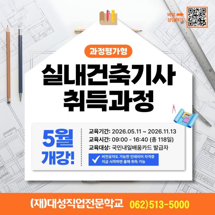 [광주국비지원][실내건축기사학원] 누구나 응시자격 없이 실내건축기사 취득 가능한 과정 소개합니다!
