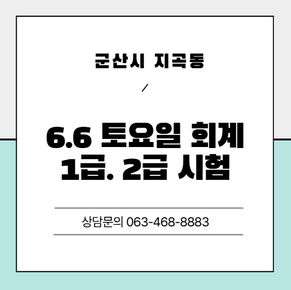 안녕하세요. 군산컴퓨터학원인 이지컴퓨터학원입니다. 자격증 준비를 계획하고 있는 학생 여러분께 중요한 시험 일정을 안내드립니다. 다가오는 6월 6일(토)에는 회계 1급·2급 시험이 예정되어 있으며, 이에 따른 원서접수 기간은 4월 30일부터 5월 6일까지입니다. 시험 일정이 정해진 만큼, 지금부터 준비를 시작하는 것이 합격을 위한 중요한 포인트가 됩니다. 특히 여상 3학년 학생들의 경우 전산회계운용사 3급 자격증과 연계된 중요한 기회가 있습니다. 해당 자격증을 취득한 경우 필기시험이 면제되어 실기시험만 응시할 수 있기 때문에, 상대적으로 짧은 기간 안에 자격증 취득이 가능한 장점이 있습니다. 회계1급 취득시 전산회계운용사....... <img src="https://blogthumb.pstatic.net/MjAyNjA0MTNfMTk2/MDAxNzc2MDQ2ODE1ODkx.GF3feqrsL79EmB3JjoZX_zZbZhwBlZwqNe3SdYkH3sUg.CGYnQyngHApgcg9vEGHVOgcuDXGKsLc49_Q4FjRWYxAg.PNG/image.png?type=s3" />