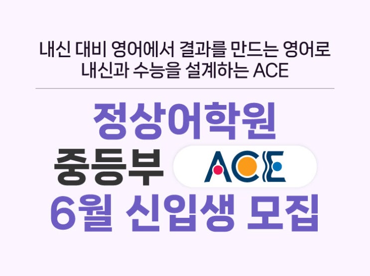 ★강서 중등부 ACE★ 6월 신규생 모집 (초등6학년~중등3학년)