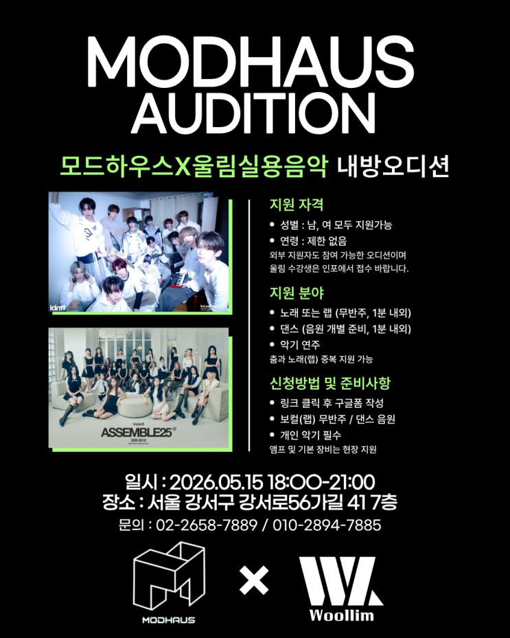모드하우스 X 울림실용음악 내방 오디션 안내 (2026년 5월 15일)