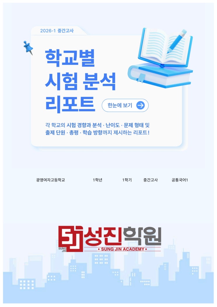 광영여고 국어학원 성진학원 26년 1학년 1학기 중간고사 분석