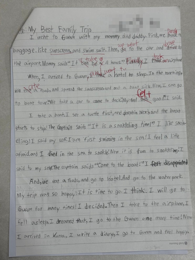 안녕하세요 시험을 넘어, 영어를 언어로 모니카리딩 원장 모니카입니다. 학부모님들과 상담을 하다 보면 영어 라이팅에 대한 고민을 정말 많이 듣게 됩니다. “단어도 알고 문법도 배우는데 왜 글을 못 쓸까요?” “첨삭을 받으면 잠깐 나아지는 것 같은데 왜 늘 제자리일까요?” 저는 이 질문에 대해 오랫동안 같은 생각을 해왔습니다. 아이는 문장을 몰라서 못 쓰는 경우도 있지만, 그보다 더 많은 경우는 쓸 내용이 없어서 못 씁니다. 그래서 모니카리딩은 라이팅을 따로 떼어 생각하지 않습니다. 저희는 먼저 영어원서를 읽고, 이해하고, 생각하고, 이야기하고, 그다음에 쓰게 합니다. 저는 이 과정이 빠진 라이팅은 오래가기 어렵다고 생각....... <img src="https://blogthumb.pstatic.net/MjAyNjA0MTNfMjkx/MDAxNzc2MDkwMTA4NTYy._YGPmJhT6zBMPPNPSov1lqji17My1eRxt01p3WJ1fUkg.w6ink-opO_sz0MShjoa7uwt7OJdK9f_FzJIifN6AJKIg.JPEG/KakaoTalk_20260412_231025612.jpg?type=s3" />