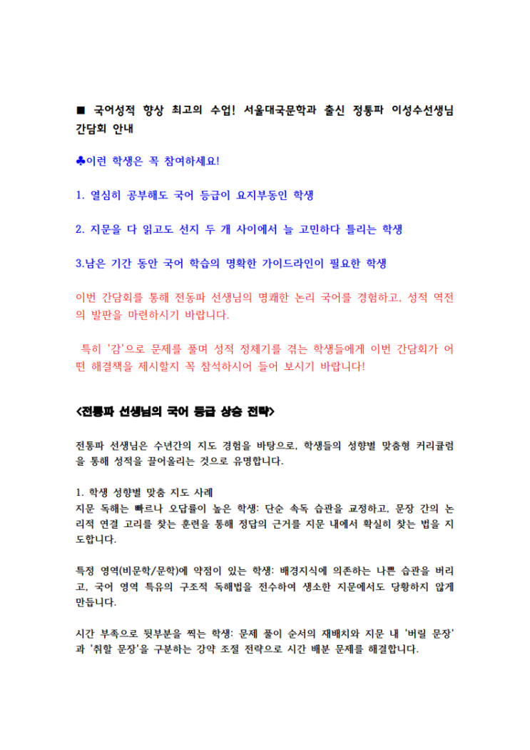 정통파 국어 이성수T 간담회(5/6, 수요일 2시)