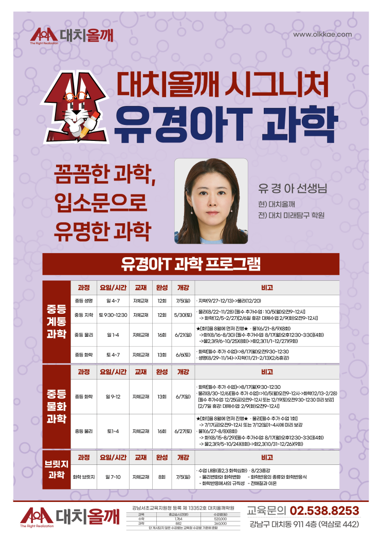 [대치올깨학원]♥입소문으로 유명한 꼼꼼 과학 유경아T의 과학 정규