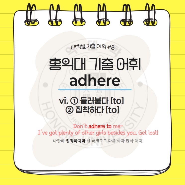 대학별 기출어휘 #8 adhere 편입영어 김영편입 기출단어 홍익대학교 홍익대 기출어휘