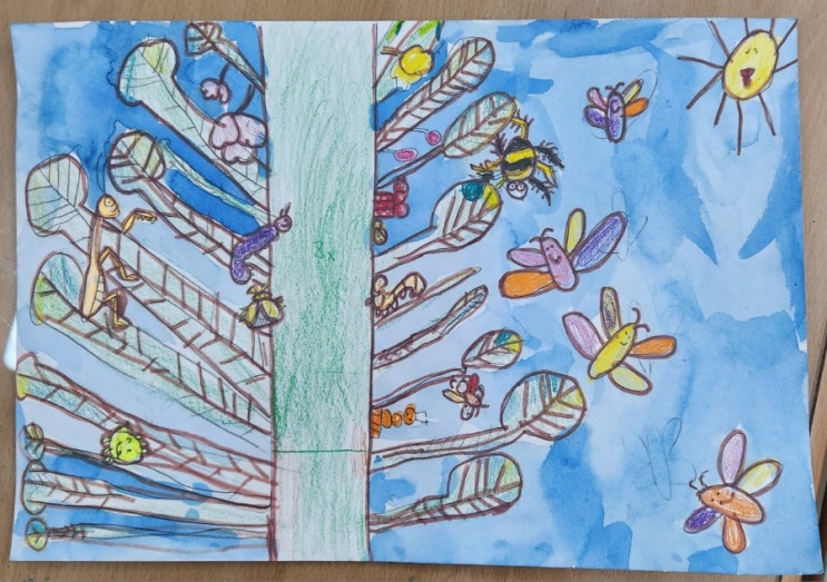 안녕하세요? 명일동에서 그림책을짓고 아이들에게 그림을 가르치는 미술치료사 박찬주입니다. 샛별이의 맑은 시선으로 그려낸 생생한 자연 이야기 오늘 블로그에서 소개해 드릴 작품은 샛별이의 순수한 상상력이 듬뿍 담긴 두 점의 그림입니다. 첫 번째 작품에서는 푸른 하늘 아래 커다란 나무를 중심으로 펼쳐지는 숲속의 일상을 만날 수 있습니다. 나무줄기를 따라 옹기종기 모여 있는 사마귀, 무당벌레, 나비 등 다양한 곤충 친구들의 모습이 정말 생동감 넘치지요? 샛별이는 곤충 하나하나의 특징을 세밀한 선으로 관찰하여 표현해 주었습니다. 화면 구석에서 환하게 웃고 있는 태양처럼, 그림 전체에서 밝고 활기찬 에너지가 느껴지는 멋진....... <img src="https://blogthumb.pstatic.net/MjAyNjA0MjlfNjQg/MDAxNzc3NDU2OTU5NzAz.8nL7vJb8AnUG3c5KK4P_-QeomBmiyfGFZCPqa9DZvdwg.kyZKfokFWzm3P-9AJCl1GObKwGE4YXMacp8zBlAEUf8g.JPEG/900%A3%DF20260429%A3%DF144534.jpg?type=s3" />