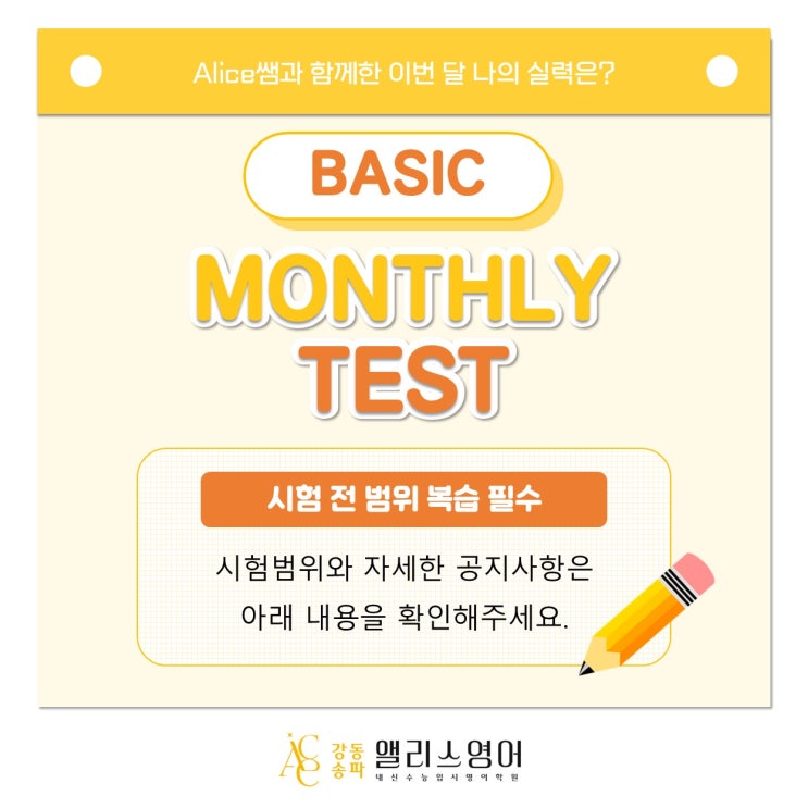 [명일동영어학원 앨리스영어] 4월 MONTHLY TEST 공지 (BASIC)